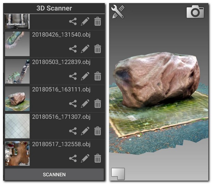 실제 물체를 3d스캔하고 앱에서 수정한 후 결과를 여러 3d파일형태로 플랫폼으로 만드는 앱이다. 아이폰에서도 3d스캐너 스캔 앱이 있듯이 안드로이드 스마트폰에서도 존재한다.