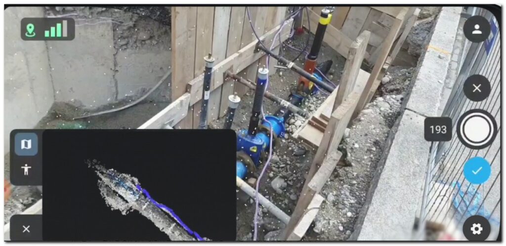PIX4Dcatch을 이용해서 3D모델을 생성하기 위해 수집된 이미지를 만드는 도구이다. 스캔 메뉴를 선택해서 영역을 표시하고 자동으로 위치 태그가 지정된 프레임을 기록하고 화면에 실시간3D메싱을 표시한다.