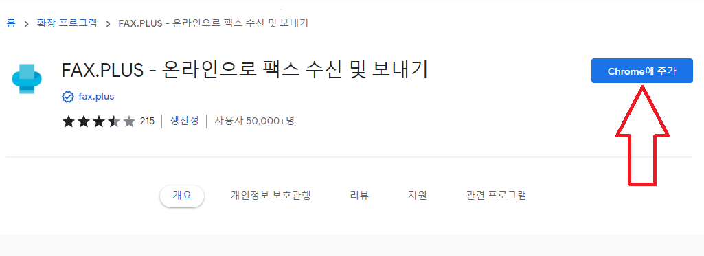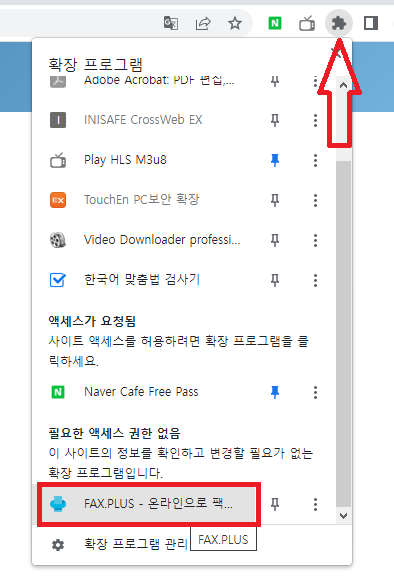 현재 컴퓨터(PC)에 크롬 브라우저가 설치되어 있어야 된다. 크롬브라우저의 확장 프로그램인 FAX.PLUS를 크롬에 추가해준다.