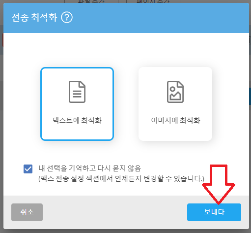 "내 선택을 기억하고 다시 묻지 않음"을 체크한 후에 보내기 버튼을 선택한다.