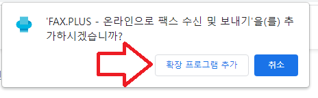 'FAX.PLUS-온라인으로 팩스 수신 및 보내기'를 확장 프로그램 추가를 할 것인지 물어보면 추가 버튼을 눌러준다.