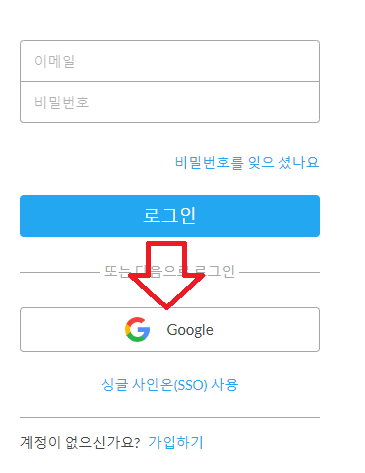 사이트로 접속이 되면서 로그인을 물어보는데, 구글계정이 있다면 Google를 선택해서 회원가입 및 로그인을 한다.