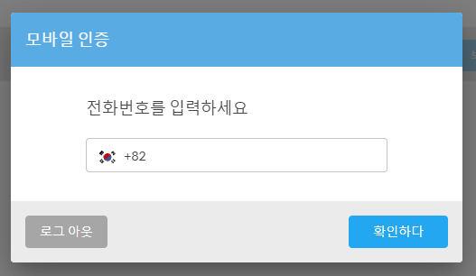 회원가입을 위해서는 휴대폰 모바일 인증을 진행해야된다. 휴대폰 전화번호를 입력한다. +82 01012345678 형식으로 입력한다.