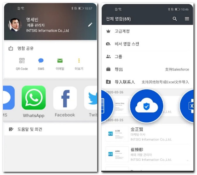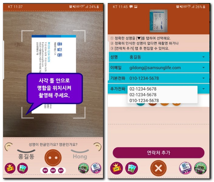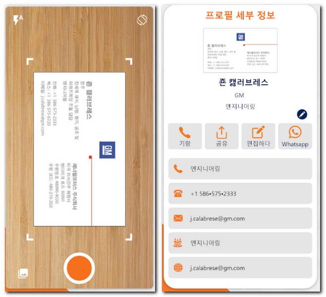 - 카메라 촬영으로 종이명함을 연락처에 추가