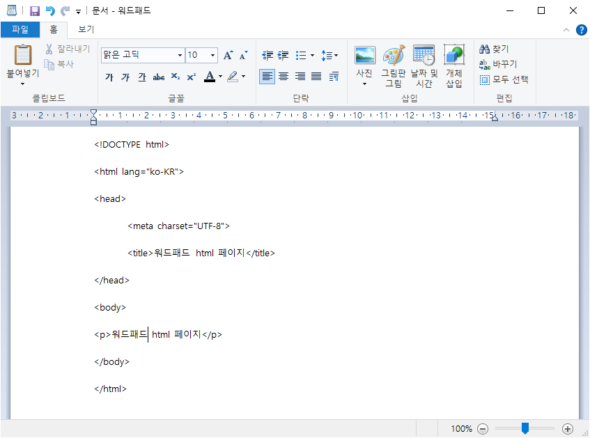 윈도우 워드패드를 이용해서 html 파일을 만들 수 있다.