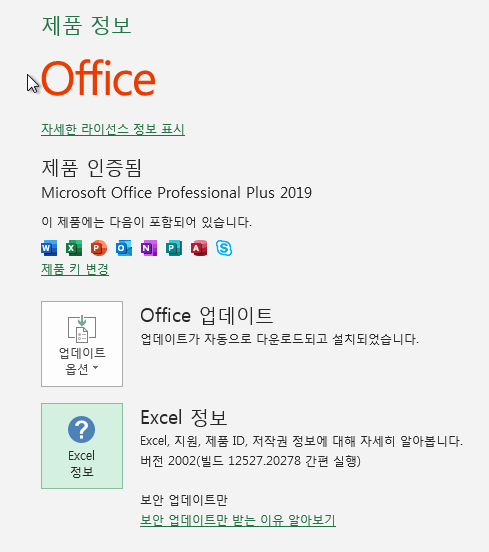 엑셀 무료 다운로드 2019 설치 정품인증방법