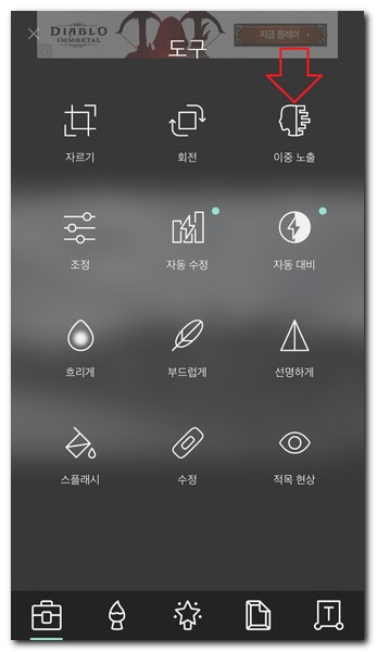 도구 옵션이 나타나면 "이중 노출"을 선택한다.