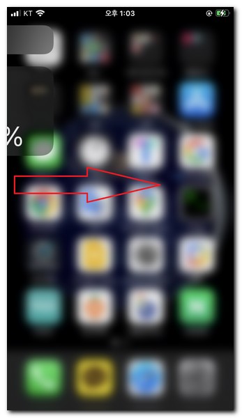 아이폰 바탕화면에서 왼쪽에서 오른쪽으로 화면을 쓸어넘긴다.