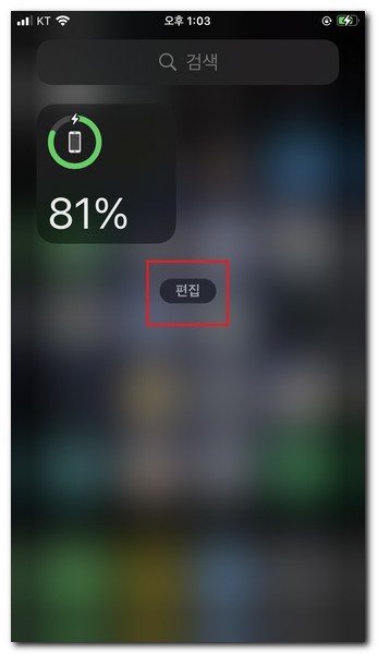 위젯창이 나타나게 되는데, 현재 등록된 위젯 목록을 확인할 수 있다. 편집 버튼을 터치한다.
