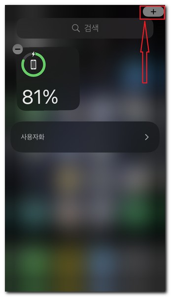 아이콘이 흔들리고 있는 중에 오른쪽 상단에 + 아이콘이 보이는데 터치한다.