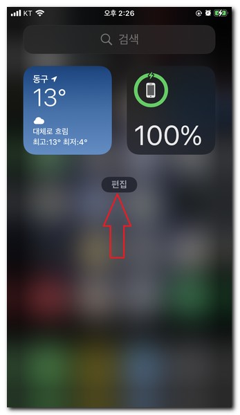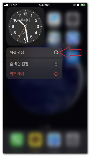 홈화면에서 위젯 화면을 편집하기 싶을때 편집하고 싶은 위젯을 길게 터치한다.