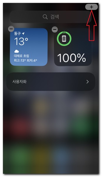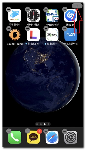 화면이 흔들리기 시작하면 우측 상단 + 아이콘을 선택한다.