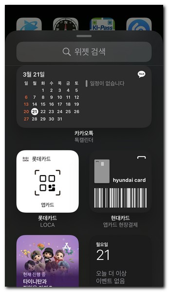 추가된 위젯을 통해서 간편하게 앱카드를 열거나 앱 내에 필요한 정보를 실시간으로 확인할 수 있게 된다.