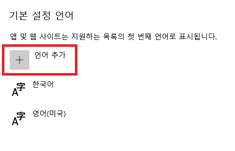 기본 설정 언어로 이동하여 언어 추가를 선택