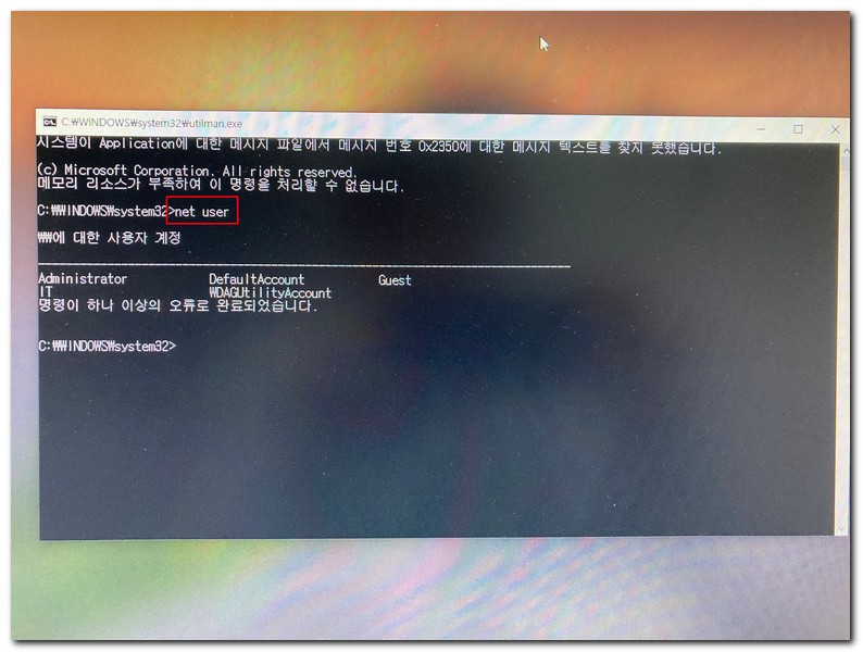 net user 변경할 계정명 변경할 암호