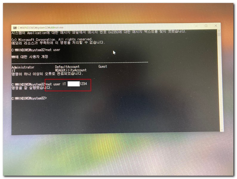 예시) net user IT 1234