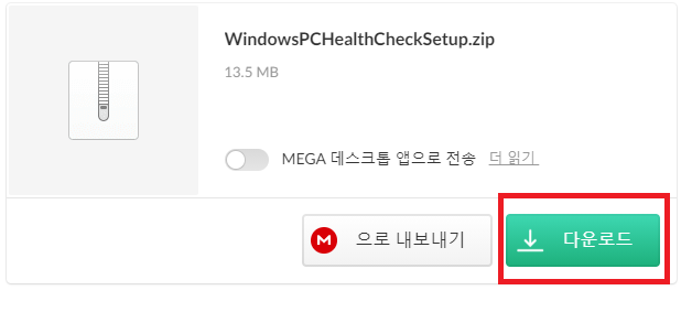 링크 연결된 페이지에 접속해서 WindowsPCHealthCheckSetup.zip 파일을 다운로드 받는다. 안전한 파일이기 때문에 걱정하지 않아도 된다.