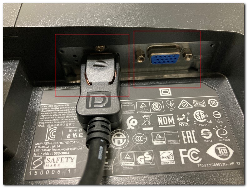 우선 필자가 사용중인 모니터의 정보는 HP ProDisplay P232 모델이다. 모니터 뒷면이나 뒷면 아래쪽을 확인해보면 DP 연결포트와 RGV 연결포트 2개가 있는것을 확인할 수 있다.