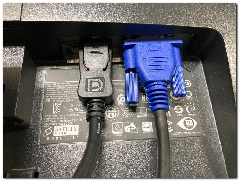 사진과 같이 DP케이블, RGB 케이블 2개를 동시에 연결한 모습이다.