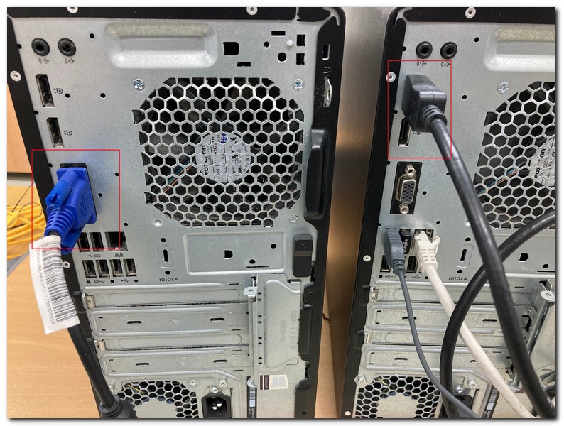 마찬가지로 컴퓨터B의 본체 뒷면에 DP포트 2개가 보인다. usb포트와 모양이 비슷하지만 좀더 크고 다르게 생겼다.