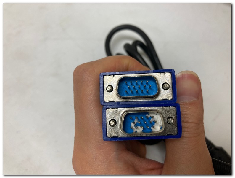 컴퓨터A의 본체 뒷면을 확인해보면 15핀으로 된 RGB input포트(암컷)에 15핀 RGB output(숫컷)을 연결한다.
