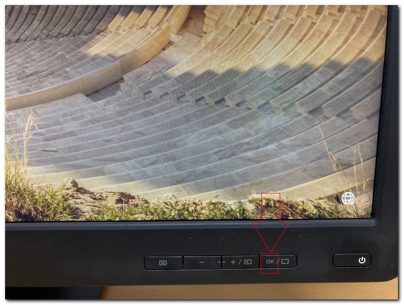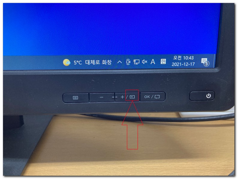 모니터에 보면 외부입력이나 메뉴선택을 할 수 있는 버튼이 보인다. 모니터 모델별로 다른데, 전면에 있는 경우도 있고, 모니터 아래쪽, 양쪽 끝에 있기도 하다.