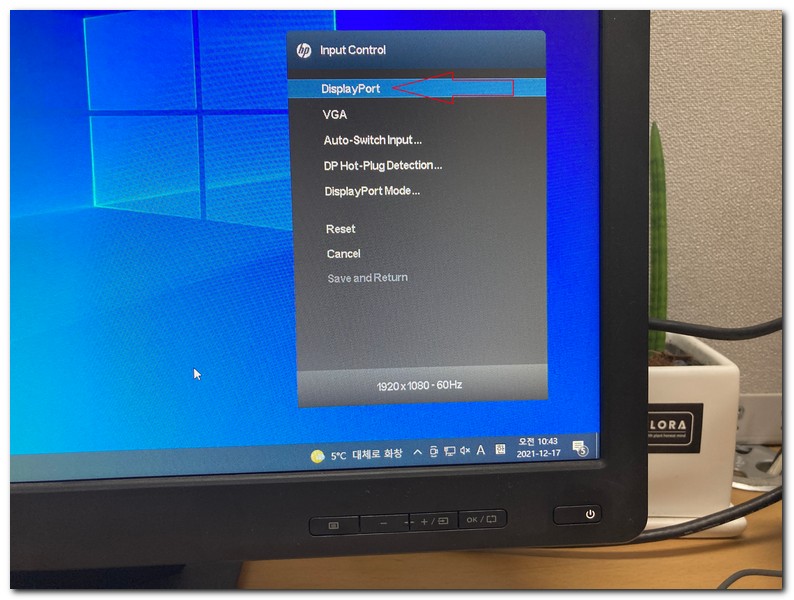 display port 또는 display setting 같은 메뉴가 보인다면 선택해준다. 메뉴를 선택할때는 ok버튼이나 엔터버튼 같은 모양을 눌려준다.