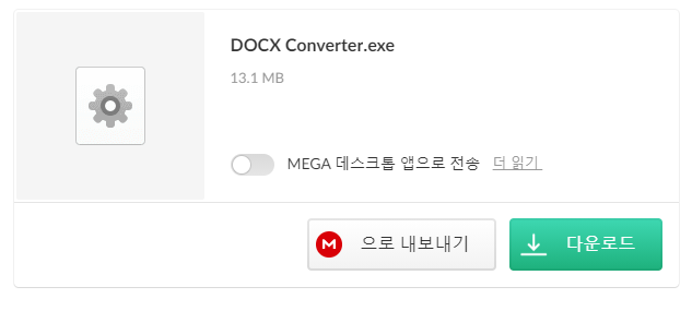 페이지로 이동하게 되면 화면에 DOCX Converter.exe 다운로드 버튼이 보인다. 클릭해서 다운로드 받는다.
