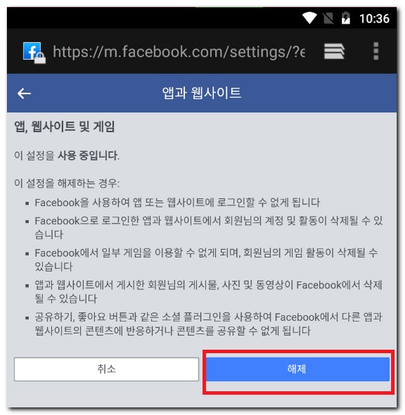 페이스북 게임연동 삭제 해제 방법