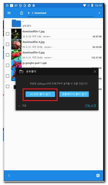 다시 ld플레이어로 돌아와서 이동 또는 복사하고 싶은 파일을 터치한다.