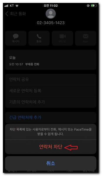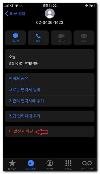 스팸전화번호라는것을 알았으니 이제는 스팸전화번호를 차단할 차례다. 아이폰의 경우 스팸차단 기능이 있다.