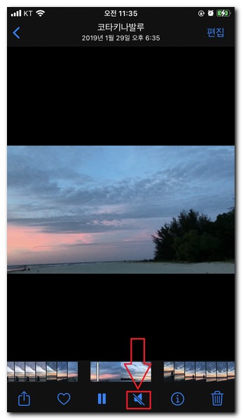비디오 촬영한 영상을 재생하게 되면 사진첩 하단에 스피커 모양의 아이콘이 음소거 아이콘으로 되어 있는것을 확인할 수 있다.