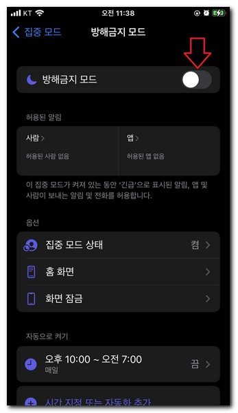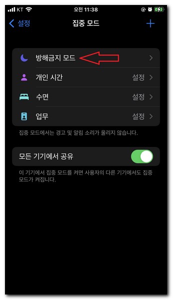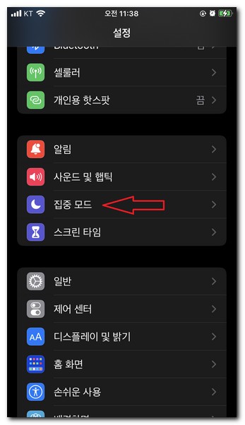이럴 경우 아이폰 설정 -> 집중 모드 선택한다.