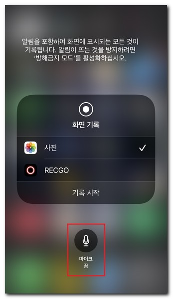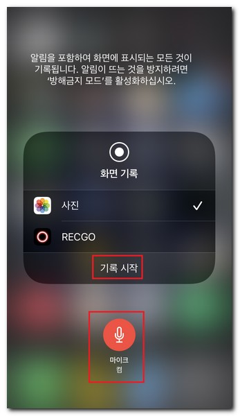 다만, 일부 앱에서는 오디오를 녹음하지 못할 수 있다. 또한, 화면을 녹화하는 동시에 화면 미러링을 사용할 없다는점도 참고하기 바란다.