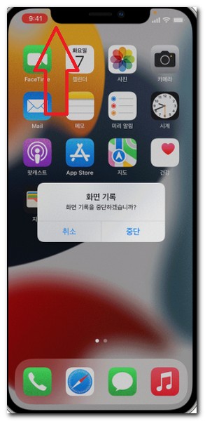 녹화중인 아이폰 화면을 중단하고 싶다면 상단 메뉴를 터치한다.