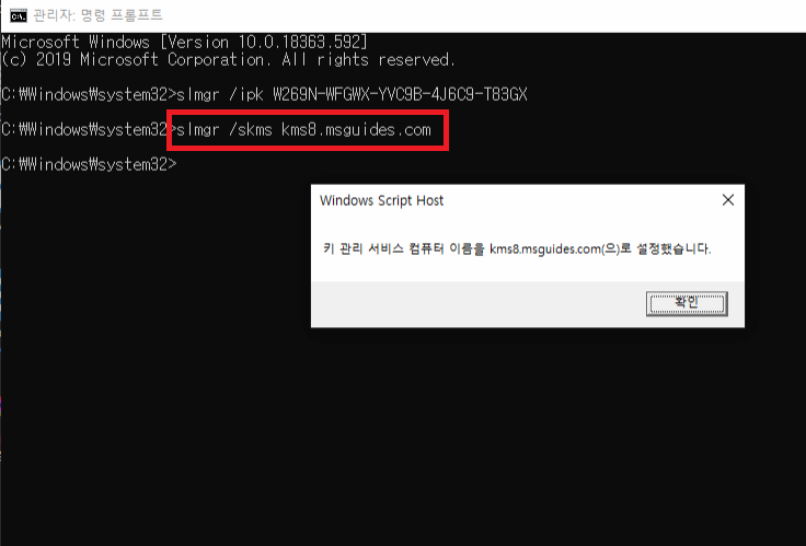 키 관리 서비스 컴퓨터 이름 설정(KMS서버 설정)
