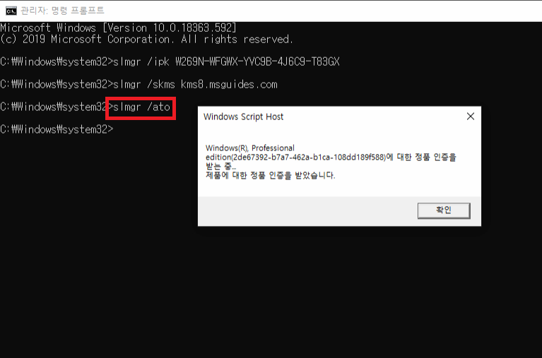 마이크로소프트 KMS 클라이언트 정품 인증 페이지를 참고하기 바란다.