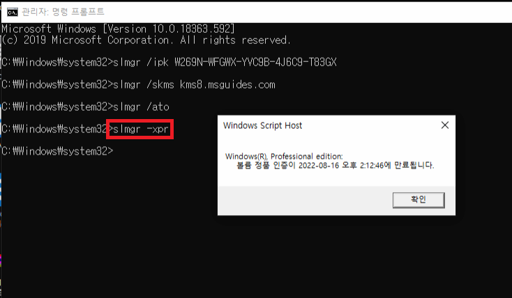 Microsoft GVLK(일반 볼륨 라이선스 키)라고 부르는 이 키를 이용해서 cmd(명령프롬프트)에서 명령어 몇줄만 입력하면 180일 마다 갱신 가능한 정품인증을 할 수 있다. 아래 내용을 그대로 따라하면 윈도우10 정품인증 가능하다.