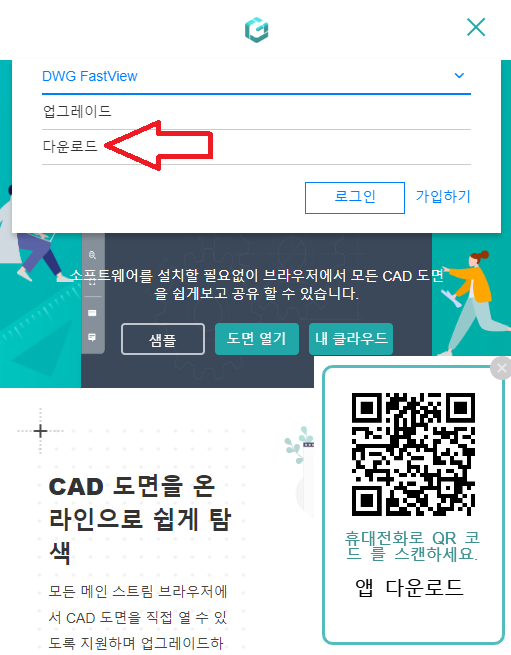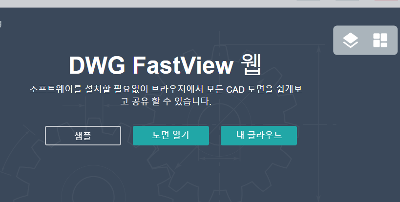 처음 홈페이지에 접속하게 되면 DWG FastView 웹이라는 모습에 도면열기 메뉴를 확인할 수 있다.