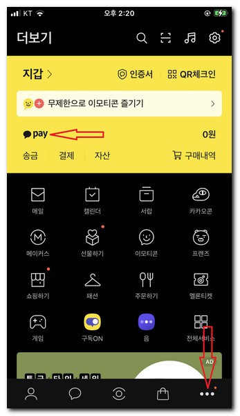 우측 하단에 000 점 3개를 터치한다.