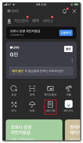 내문서함 이라고 표시되어 있는 카테고리를 터치한다.