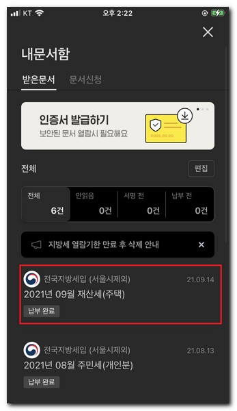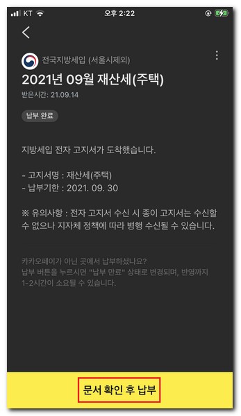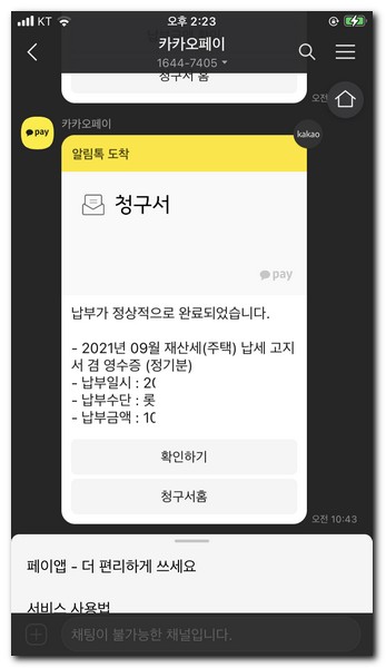 카카오톡 재산세 납부방법
