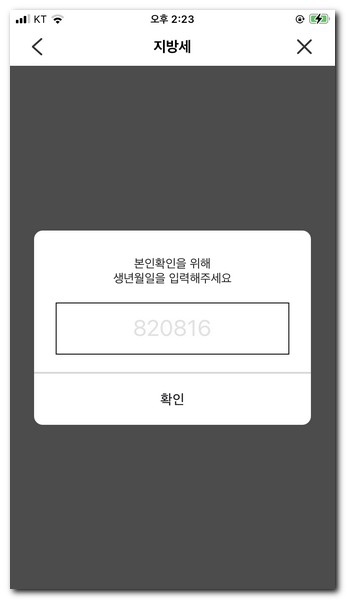 본인의 생년월일만 입력하게 되면 바로 고지서 납부가 진행된다.