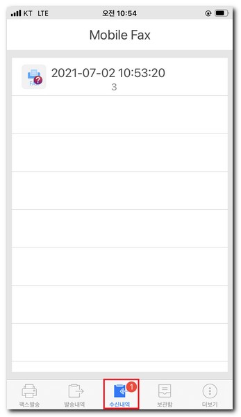 수신내역 항목을 터치하게 되면 나에게 전송된 팩스 문서를 확인할 수 있다.