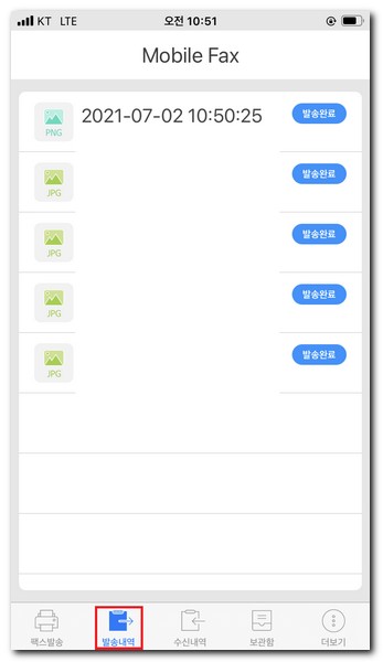 팩스 발송이 정상적으로 되었다면 발송내역에서 발송완료를 확인할 수 있다.
