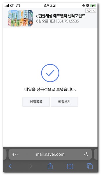 상대방에게 메일을 성공적으로 보내졌다는 메시지가 나타나면 성공한 것이다.
