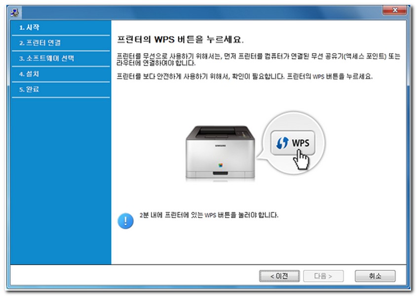 프린터를 무선으로 사용할 수 있도록 연결을 돕는 기능이다. 2분 이내에 프린터에 있는 wps버튼을 눌러줘야 된다.
