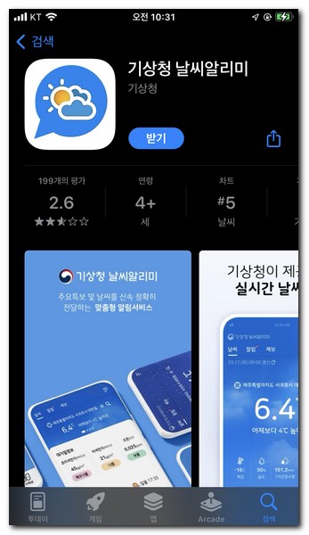 아이폰 사용자라면 앱스토어에서 기상청 날씨알리미를 다운받아 설치한다.
