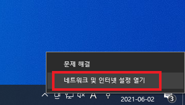 인터넷 속도를 조금이라도 더 빠르게 하고 싶다면, 우측 하단에 모니터 모양의 아이콘을 마우스 오른쪽 버튼으로 클릭해서 실행한다.