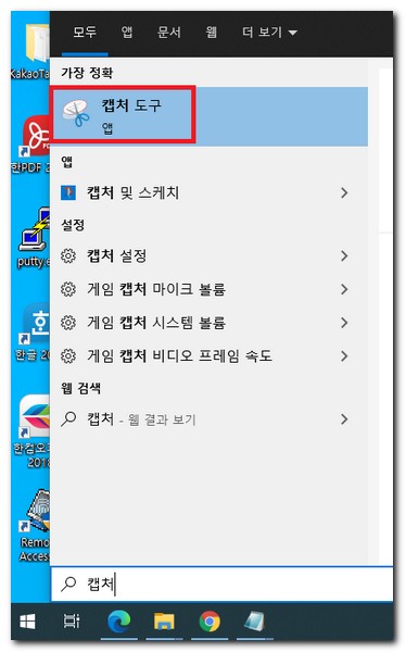 윈도우키 눌림 -> 캡처 입력 -> 캡처 도구 앱 클릭